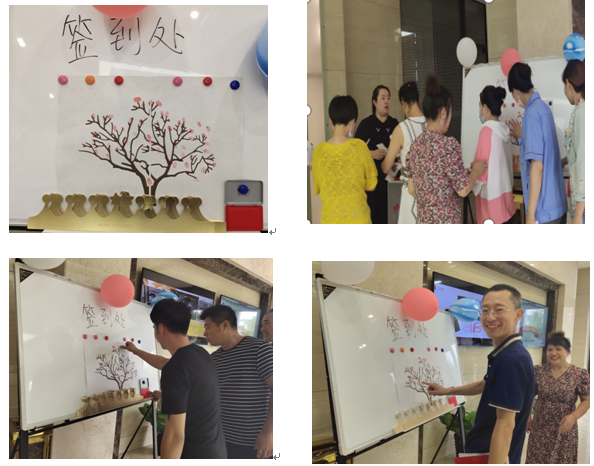 準(zhǔn)備就緒后,壽星們陸續(xù)進(jìn)場(chǎng)簽到并領(lǐng)取抽獎(jiǎng)券,大家紛紛在背景墻前拍照合影。由壽星們齊按的手印做成了鴻盛樹(shù),每位員工是樹(shù)葉,公司是大樹(shù),共同組成了鴻盛大家庭。
